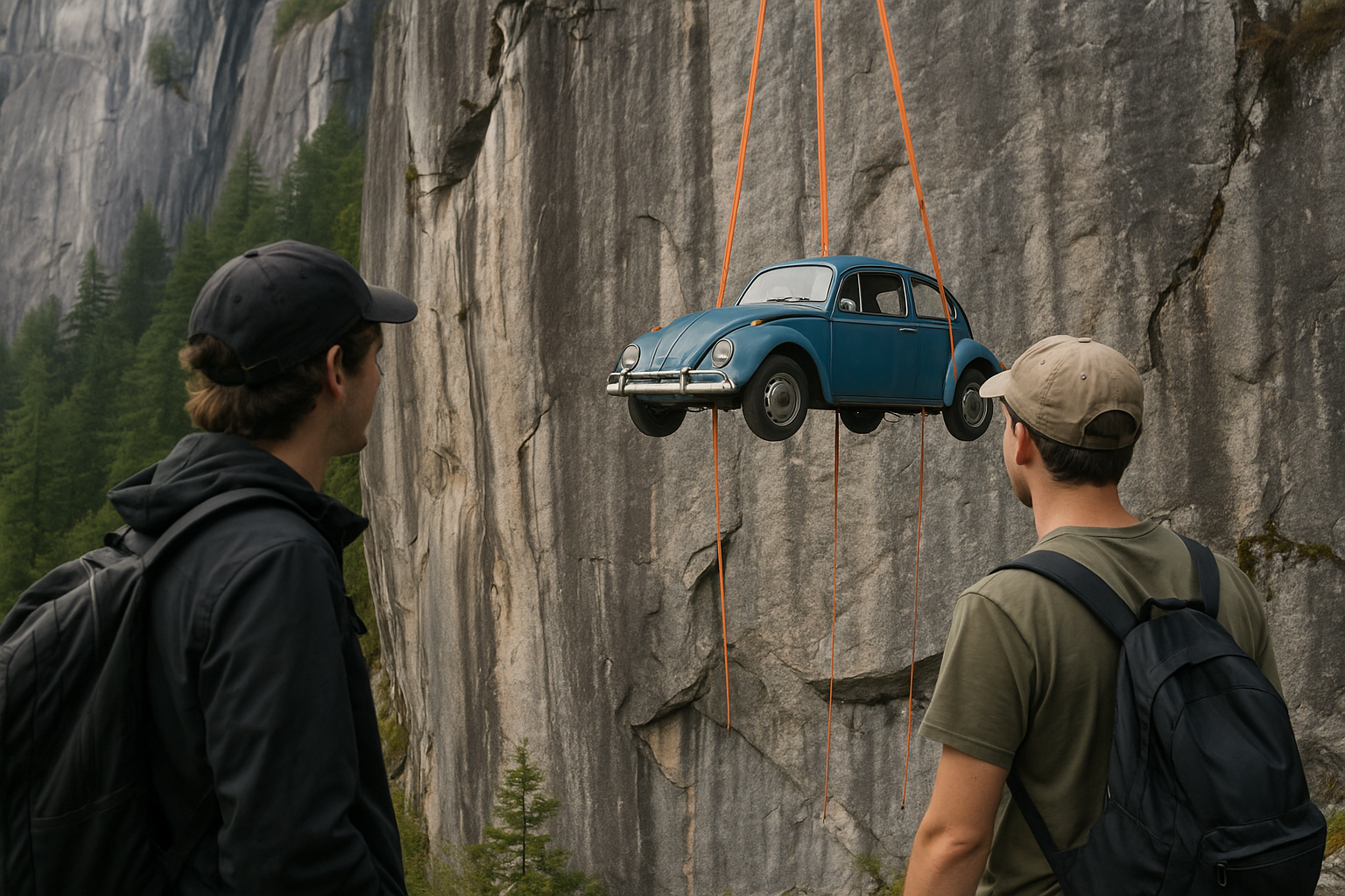 Engineering Students Suspend Vw Beetle From Sacred Rock Face In British Columbia Video